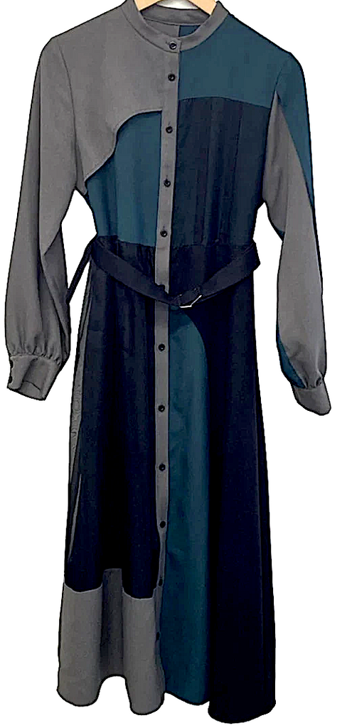 UNITED TOKYO JAPAN. Multi-Color Gray Blue Green Black Dress