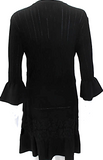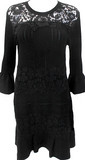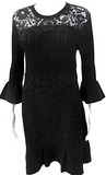 Valentino Garavani Italy Black  Floral Lace Ribbed Crew Neck Bell Sleeve Dress