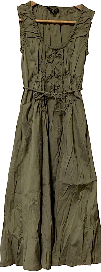 • WALTER VOULAZ ITALY. Olive Shirred Design Dress